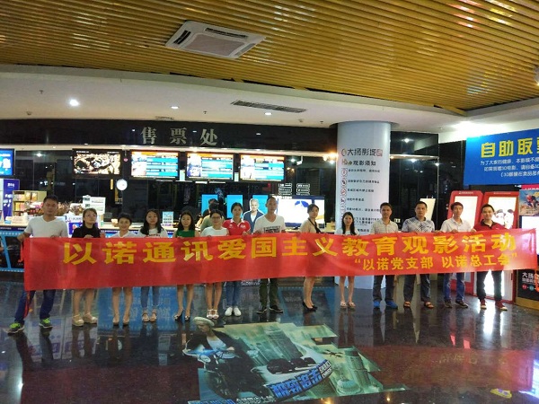 為迎接黨的十九大勝利召開,進一步激發黨員的愛國主義情懷,2017 923日,廣東東莞市大朗鎮企業工委、社會組織工委和“陽光雨”黨群服務中心在中影大揚長盛影城開展“兩新”黨員愛國教育觀影活動,福日電子二級控股子公司廣東以諾通訊有限公司黨支部組織公司黨員、工會會員參加本次活動。